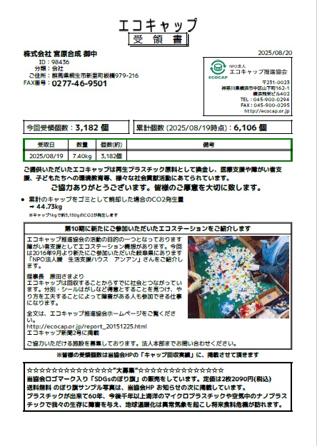 ¡Ê¥¨¥³¥¥ã¥Ã¥×¤ÏºÆÀ¸¥×¥é¥¹¥Á¥Ã¥¯¸¶ÎÁ¤È¤·¤Æ´¹¶â¤·¡¢°åÎŻٱç¤ä¾ã¤¬¤¤¼Ô»Ù±ç¡¢»Ò¤É¤â¤¿¤Á¤Ø¤Î´Ä¶¶µ°éÅù¡¢ÍÍ¡¹¤Ê¼Ò²ñ¹×¸¥³èư¤Ë¤¢¤Æ¤é¤ì¤Þ¤¹¡£¡Ë